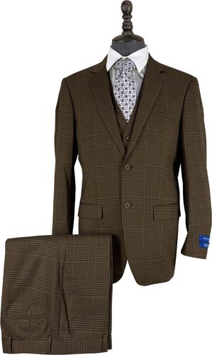 Brown Plaid 3 Pcs. Modern Fit Suit (Item#: PLD2122-3 )
