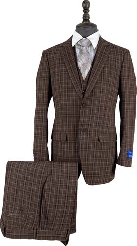 Brown/Navy Plaid 3 Pcs. Modern Fit Suit (Item#: PLD2137-2 )