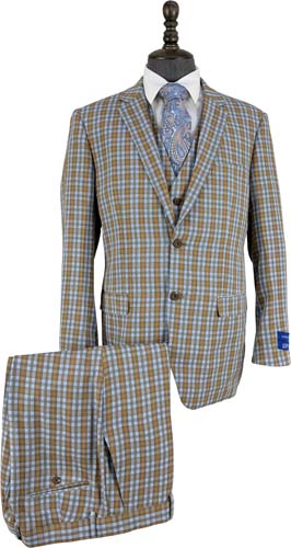 Orange/Blue Plaid 3 Pcs. Modern Fit Suit (Item#: PLD2144-2 )
