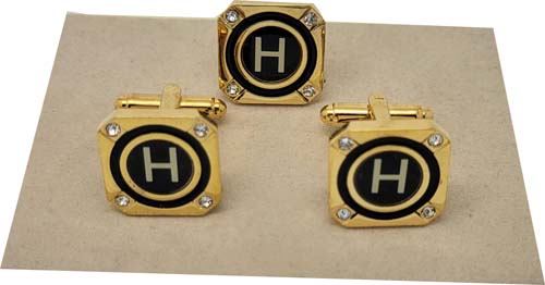 Fine Quality Initial Cufflinks With Matching Tie Pin (Item#: TC3-H )