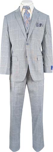 • Light Blue Plaid 3 Pcs. Modern Fit Suit