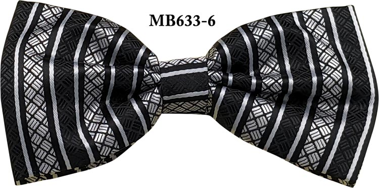BLACK/SILVER M.FIBER WOVEN BOW TIE W/HANKY IN THE BOX (Item#: MB633-6B )