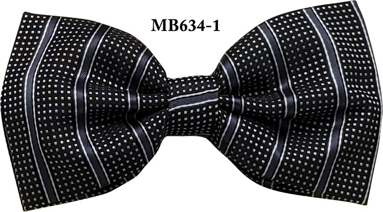BLACK/GREY M.FIBER WOVEN BOW TIE W/HANKY IN THE BOX (Item#: MB634-1B )