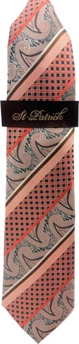 Coral/Silver Microfiber Tie Hanky Set (Item#: MT689-3 )