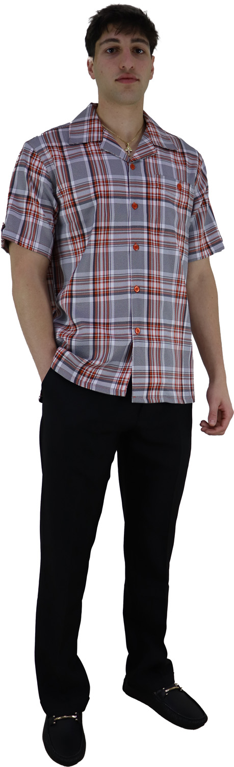 Plaid Shirt And Pants Outfit M To 3XL (Item#: PLS2142A )