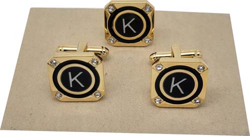 Fine Quality Initial Cufflinks With Matching Tie Pin (Item#: TC3-K )
