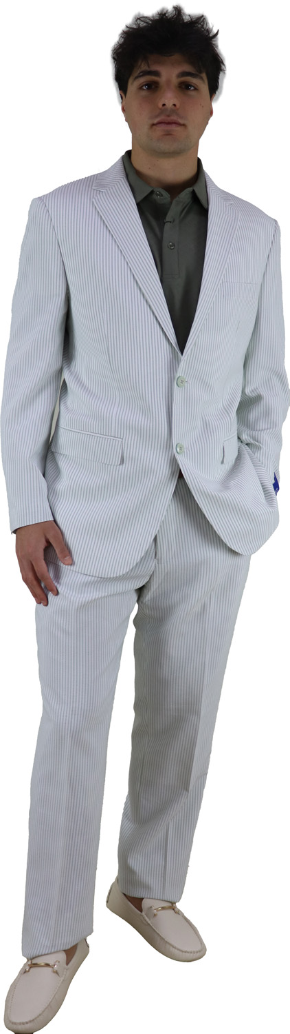 Seersucker Regular Fit MEN'S SUIT 2 BUTTONS/FLAT PANTS (Item#: F3-SKR )