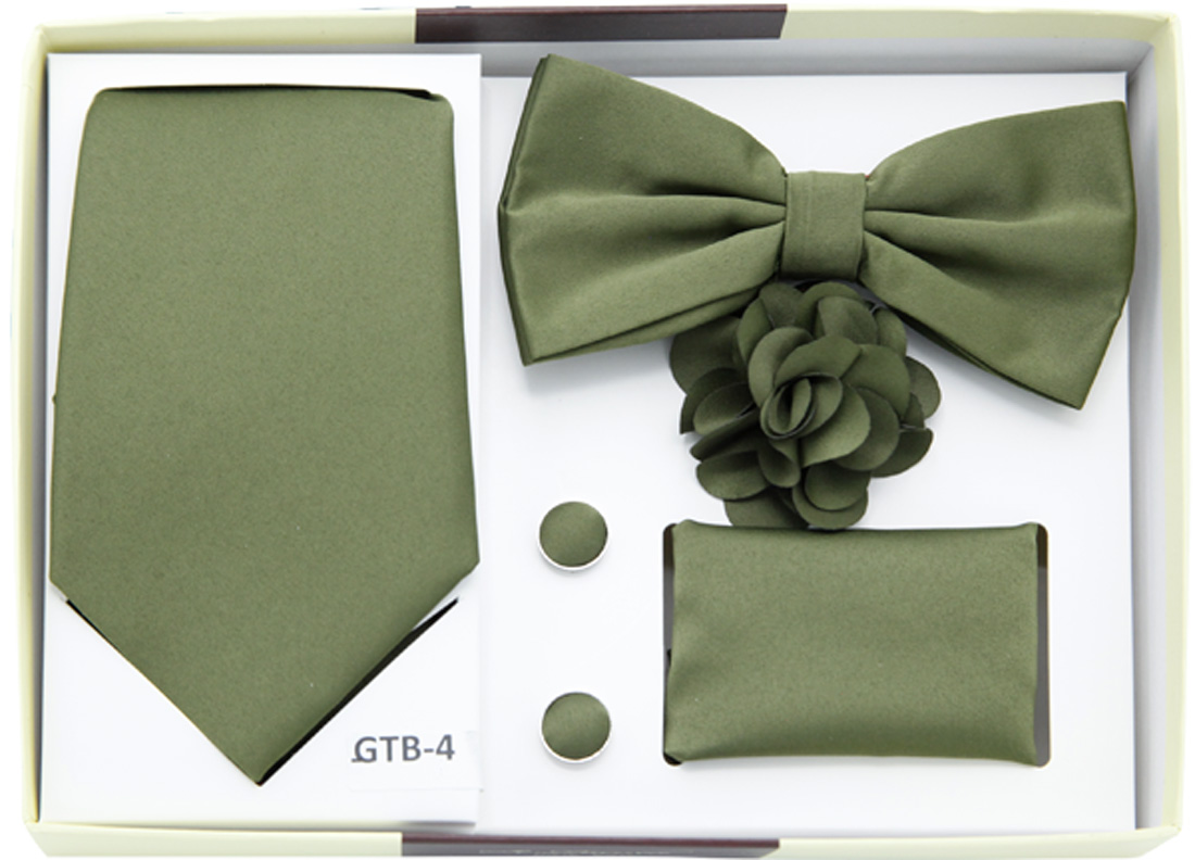 Solid Olive 5 Pcs. Bow Tie/Tie Gift Set (Item#: GTB04 )