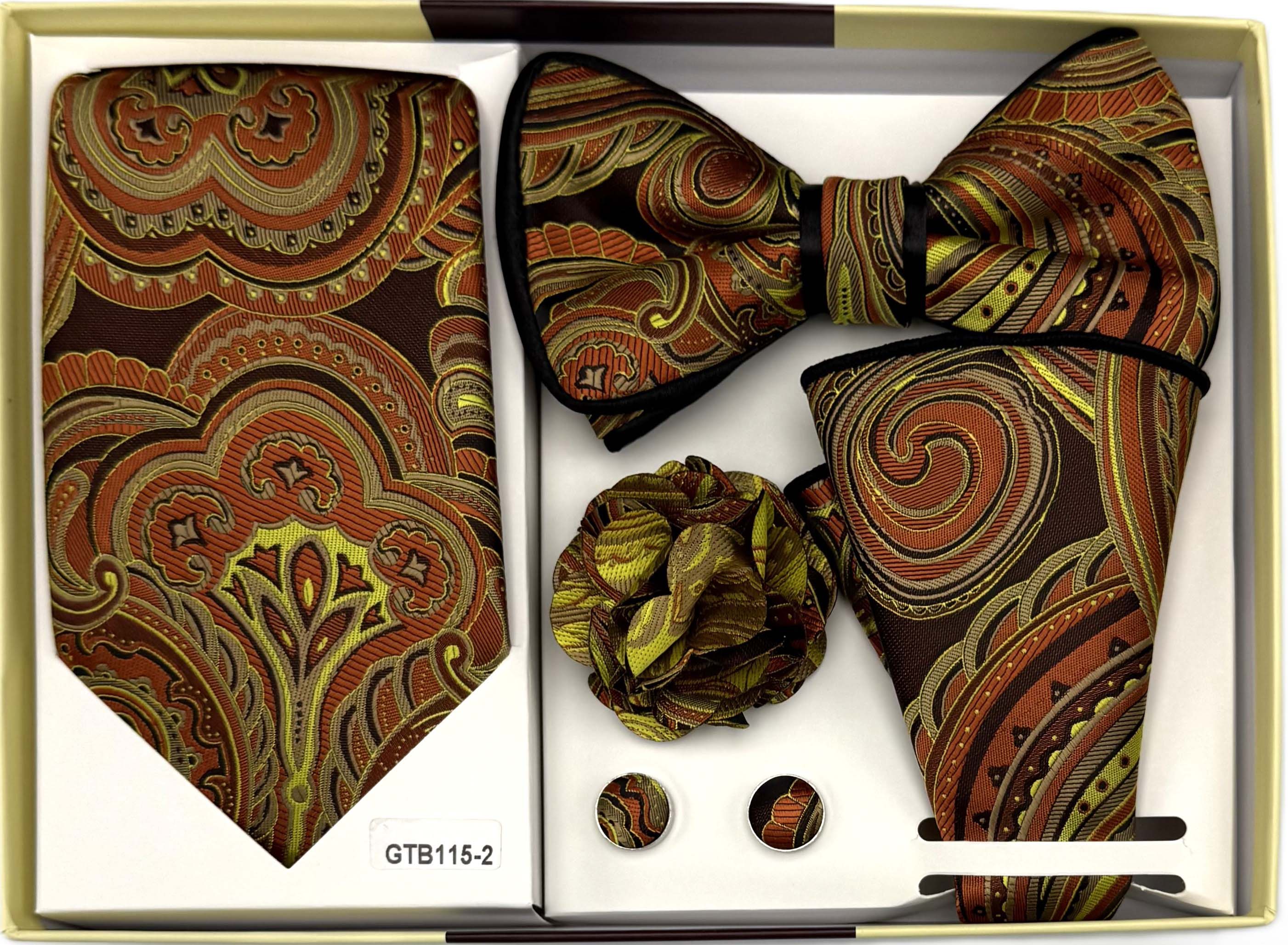 Orange/Yellow/Brown 5 Pcs. Bow Tie/Tie Gift Set (Item#: GTB115-2 )