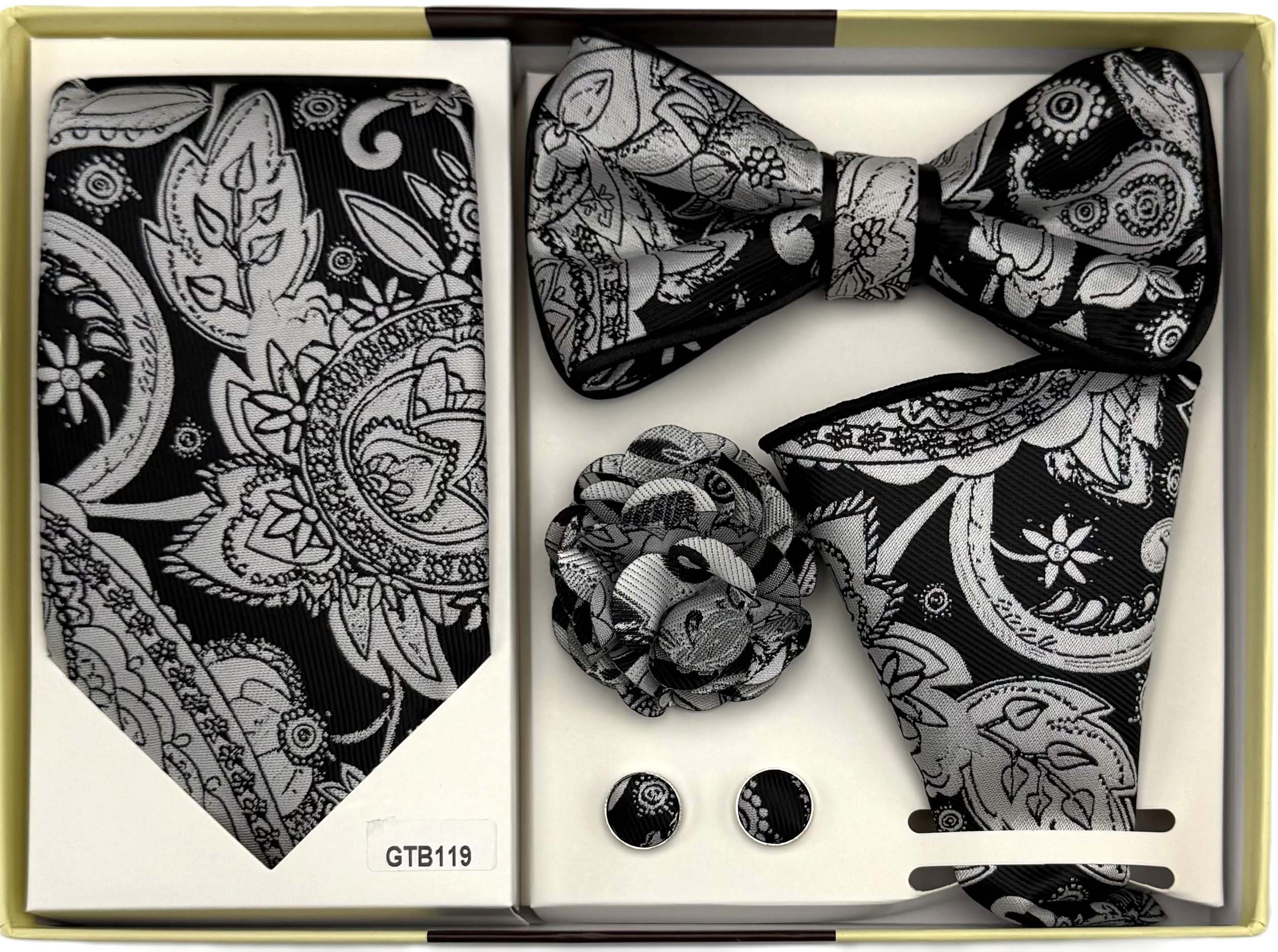 Black/Silver 5 Pcs. Bow Tie/Tie Gift Set (Item#: GTB119 )