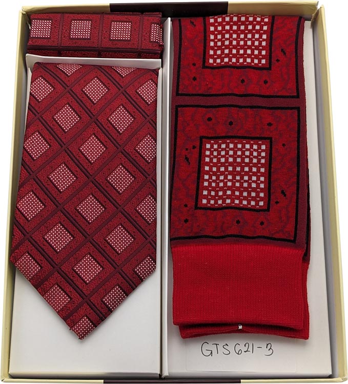 Red/Black 3Pcs.Tie/Hanky and Socks Gift Set (Item#: GTS621-3 )