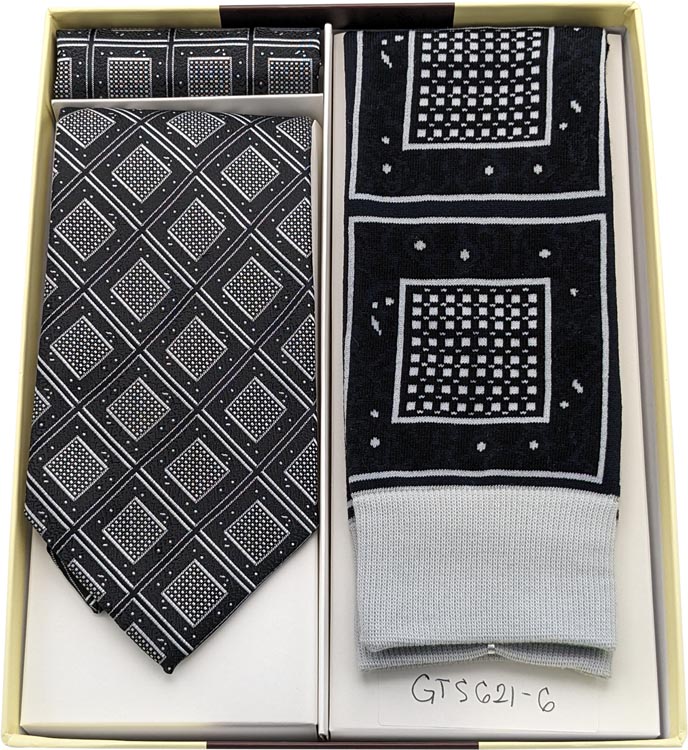 Silver/Black 3Pcs.Tie/Hanky and Socks Gift Set (Item#: GTS621-6 )