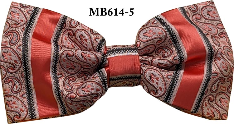 CORAL/GREY M.FIBER WOVEN BOW TIE W/HANKY IN THE BOX (Item#: MB614-5B )