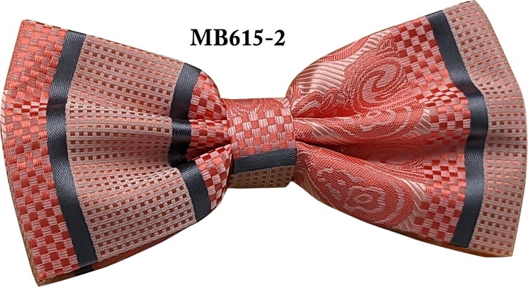 CORAL/GREY M.FIBER WOVEN BOW TIE W/HANKY IN THE BOX (Item#: MB615-2B )