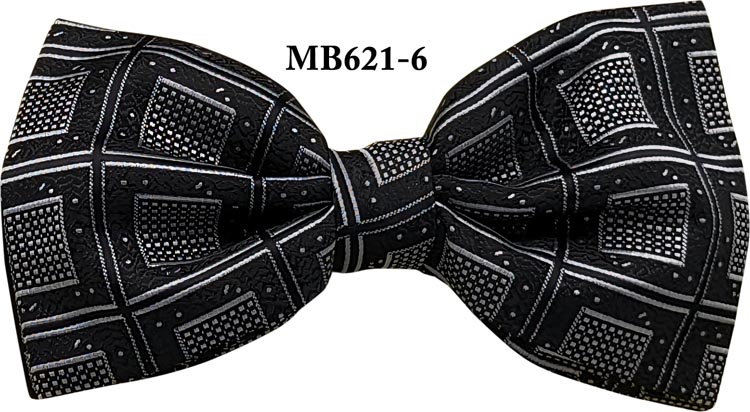 BLACK/SILVER M.FIBER WOVEN BOW TIE W/HANKY IN THE BOX (Item#: MB621-6B )