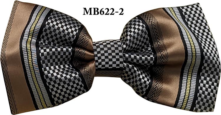 TAN/BLACK/SILVER M.FIBER WOVEN BOW TIE W/HANKY IN THE BOX (Item#: MB622-2B )