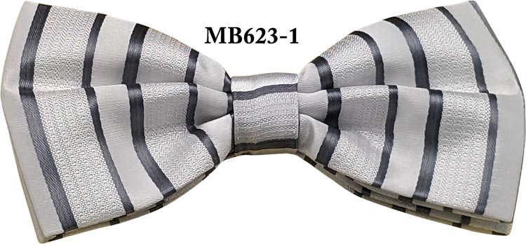 WHITE/SILVER M.FIBER WOVEN BOW TIE W/HANKY IN THE BOX (Item#: MB623-1B )