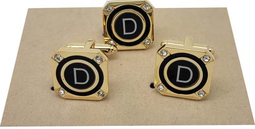 Fine Quality Initial Cufflinks With Matching Tie Pin (Item#: TC3-D )