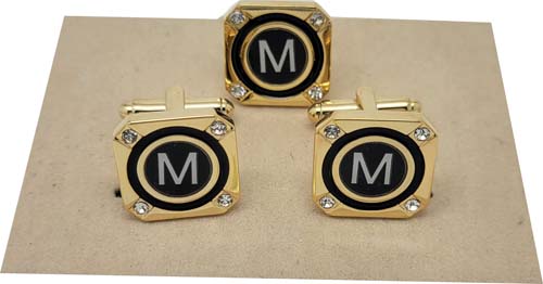 Fine Quality Initial Cufflinks With Matching Tie Pin (Item#: TC3-M )