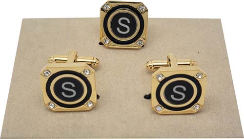 Fine Quality Initial Cufflinks With Matching Tie Pin (Item#: TC3-S )
